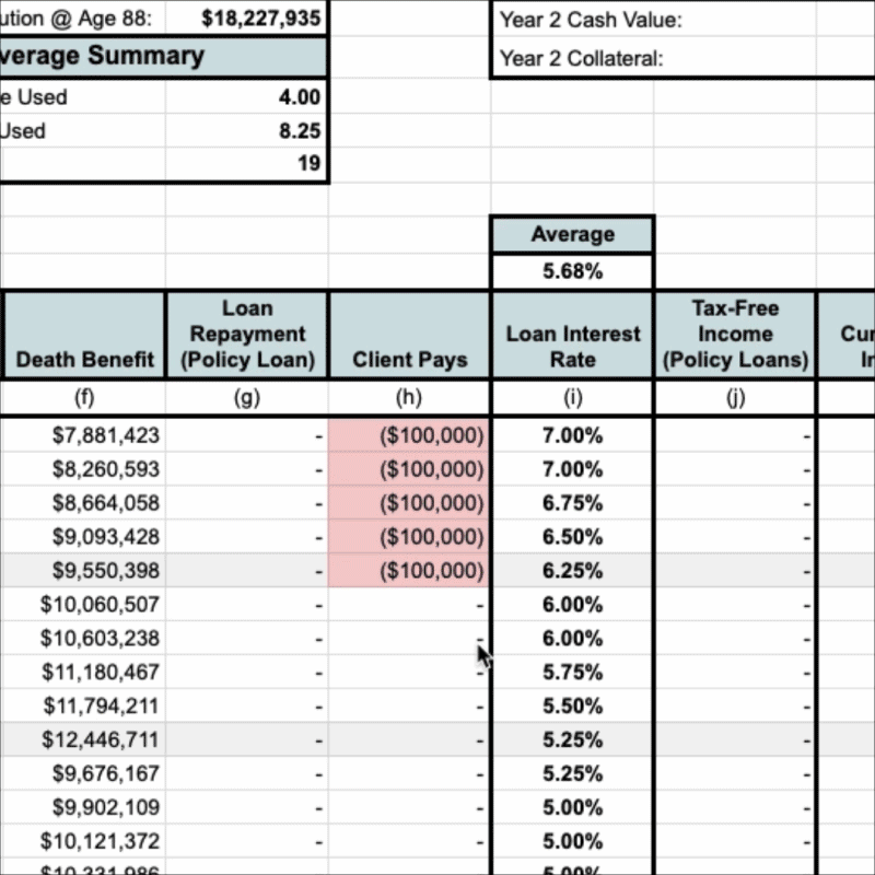 By retirement, the bank is paid back — using the policy’s own growth — leaving the client with lifetime income and a fully paid policy.